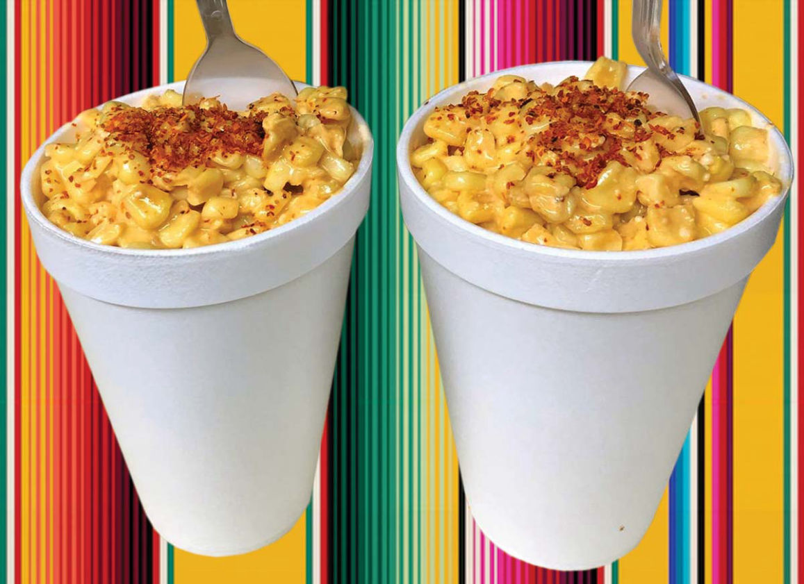 Corn, Valentina (Hot Sauce), Cheese, Mayonnaise, Lemon and Tajin sauce,
