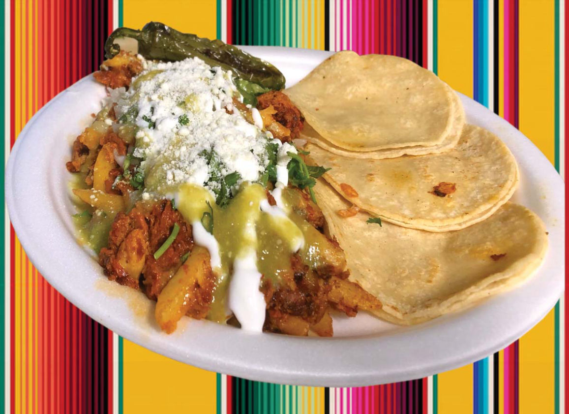 Papas, Carne de su Preferencia, Salsa, Queso, Crema, Cebolla, Cilantro.