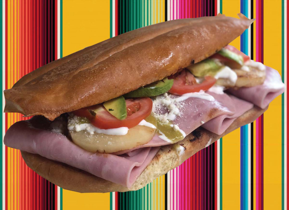 Ham Mexican sandwich, Avocado, Mozzarella Cheese, Jitomate, Chile, Cream. Mixed Torta available.